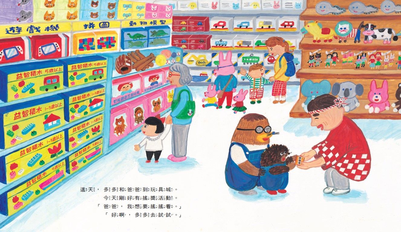 這天,多多和爸爸到玩具城,參加搖獎活動,